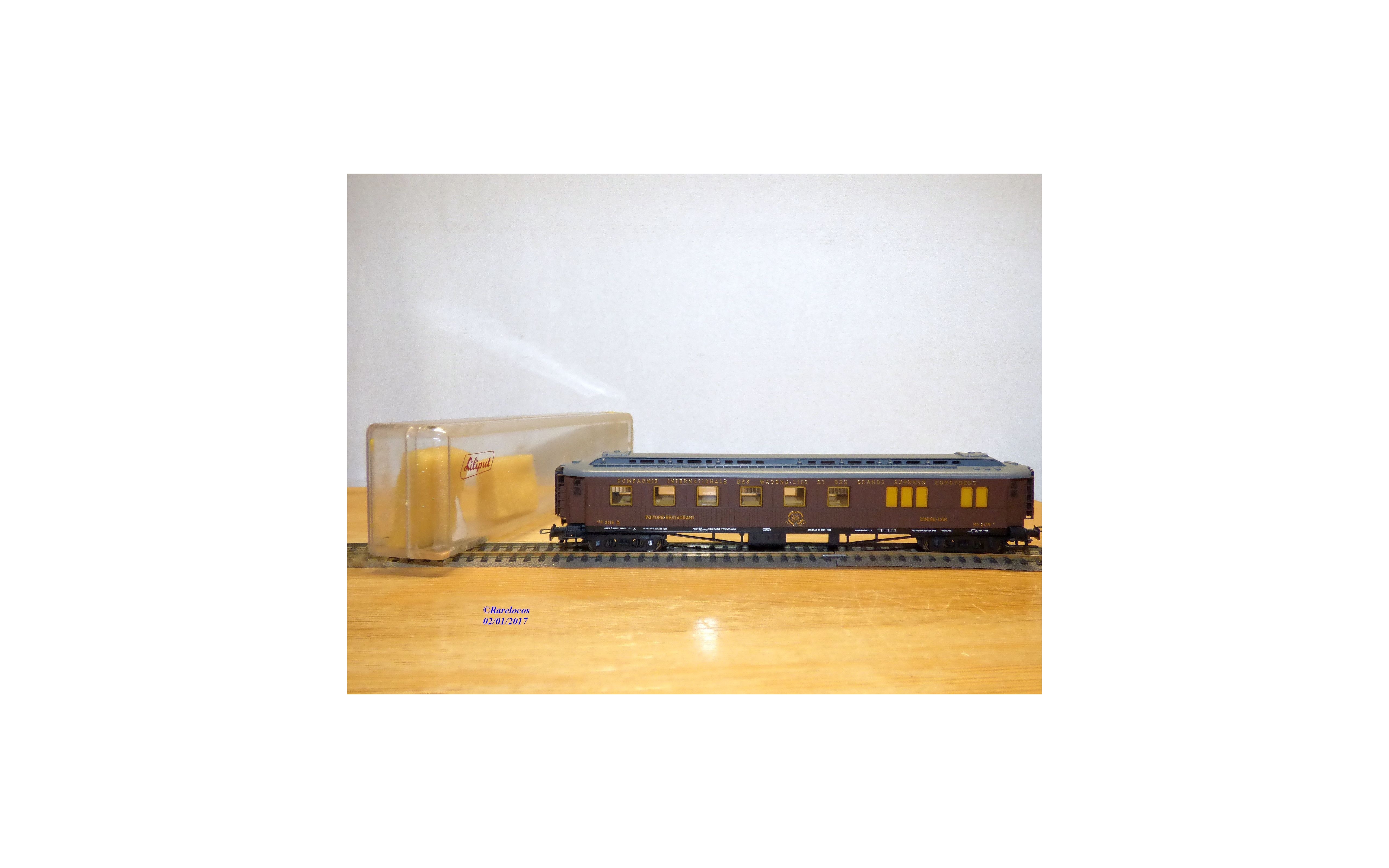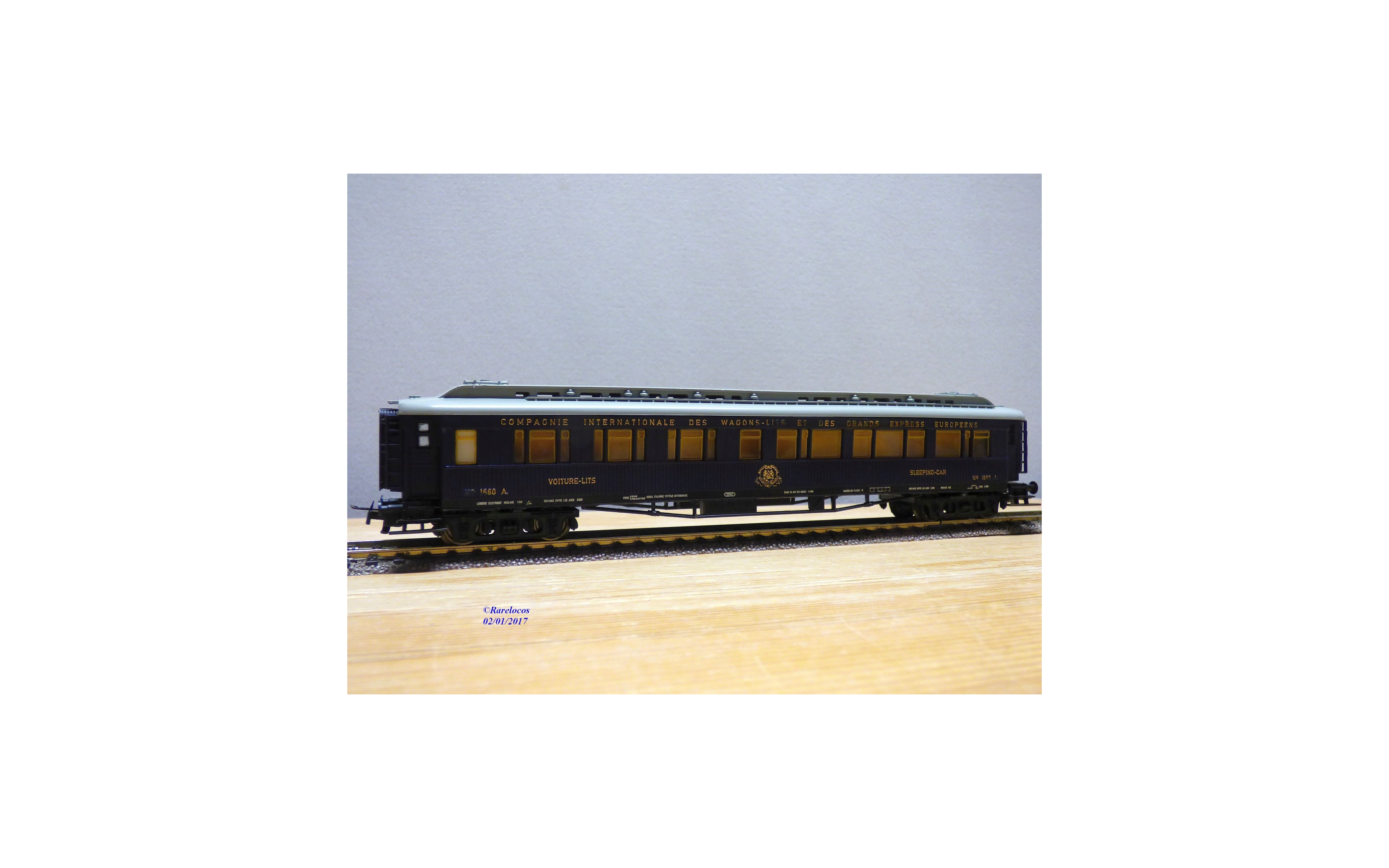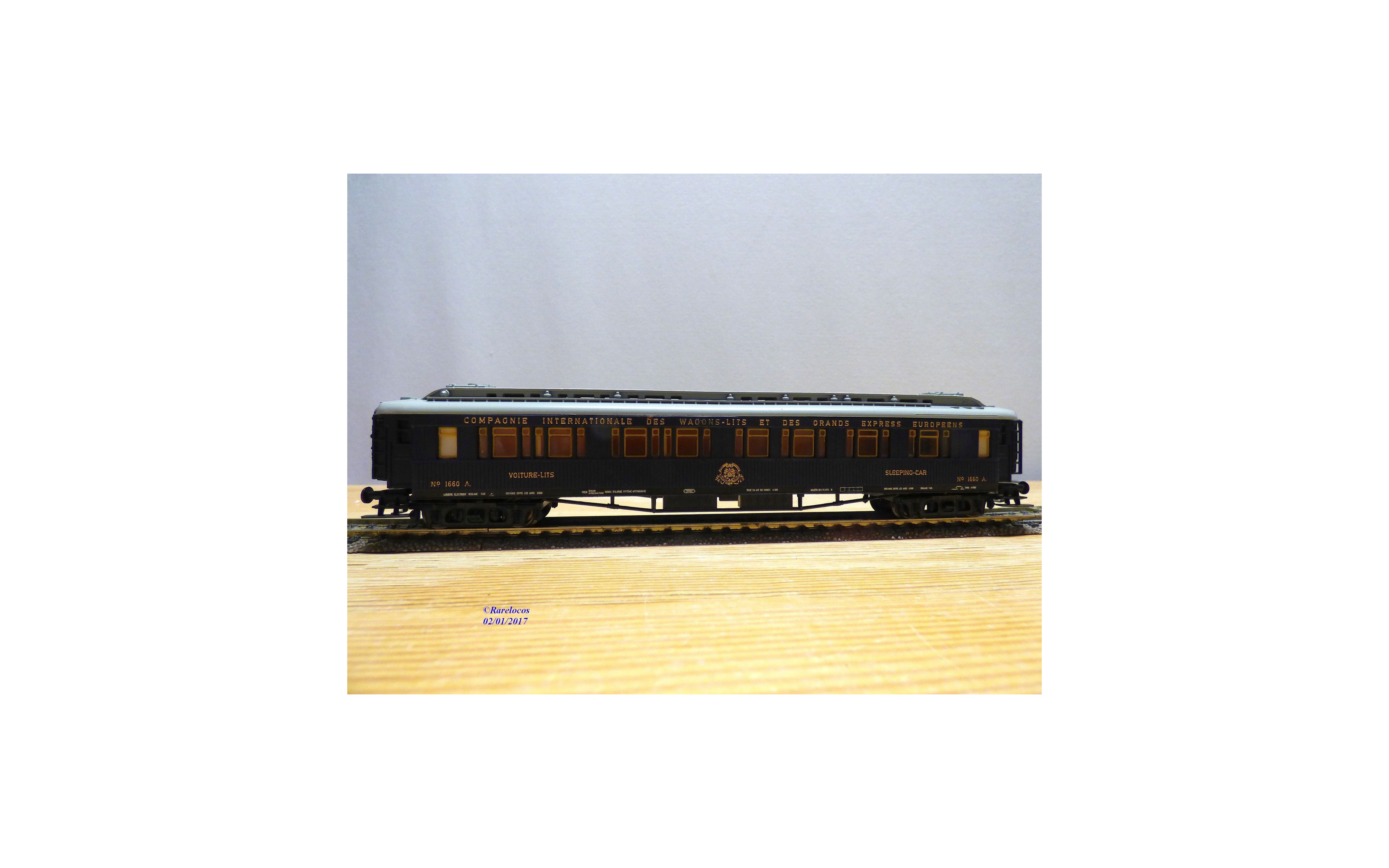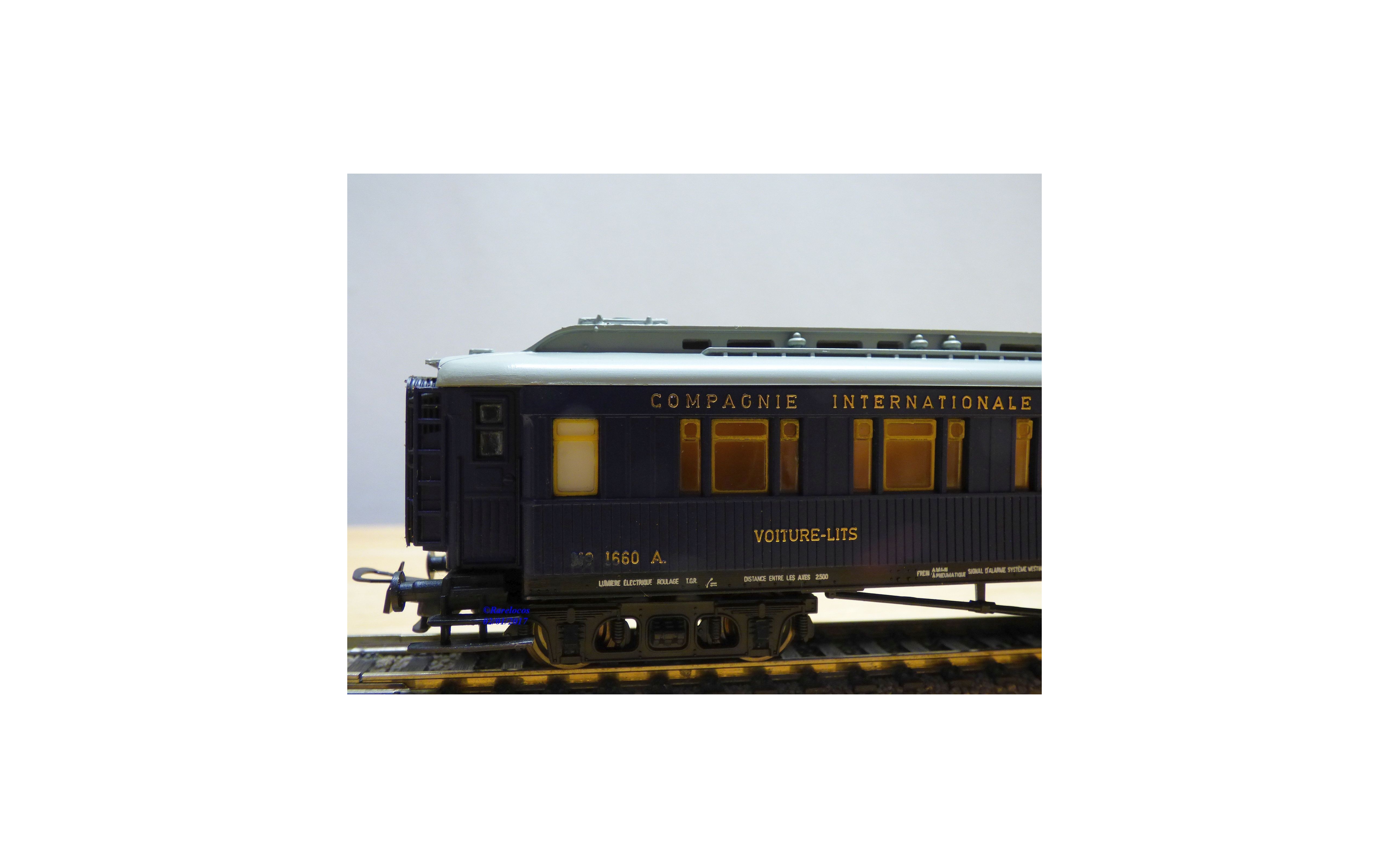 Voiture lits en teck à 2 bogies des chemins de fer français ( CIWL ), livrée bleue à toit gris, aménagements intérieurs, immatriculation : 1660 A, boîte d'origine en excellent état .