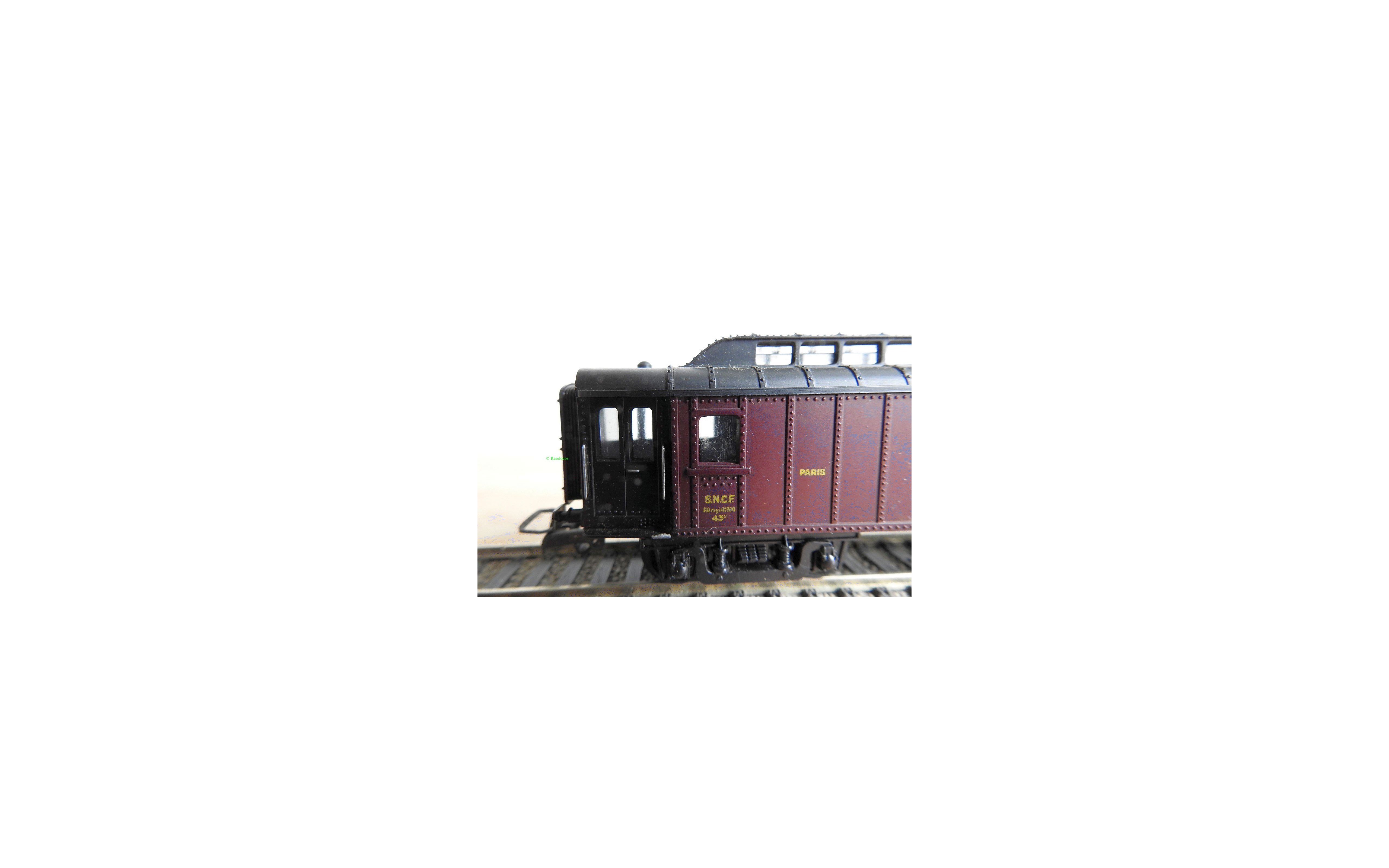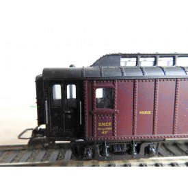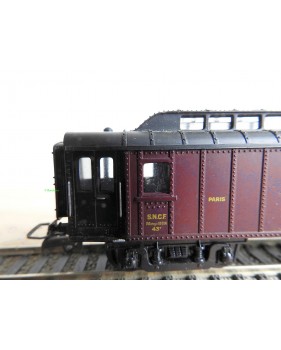 Fourgon postal bureau ambulant de 21,6 m des chemins de fer français ( SNCF ), livrée lie de vin, pièces de détaillage encore scellées, immatriculation : PAmyi 41510, boîte d'origine en bon état mais pas la bonne référence.