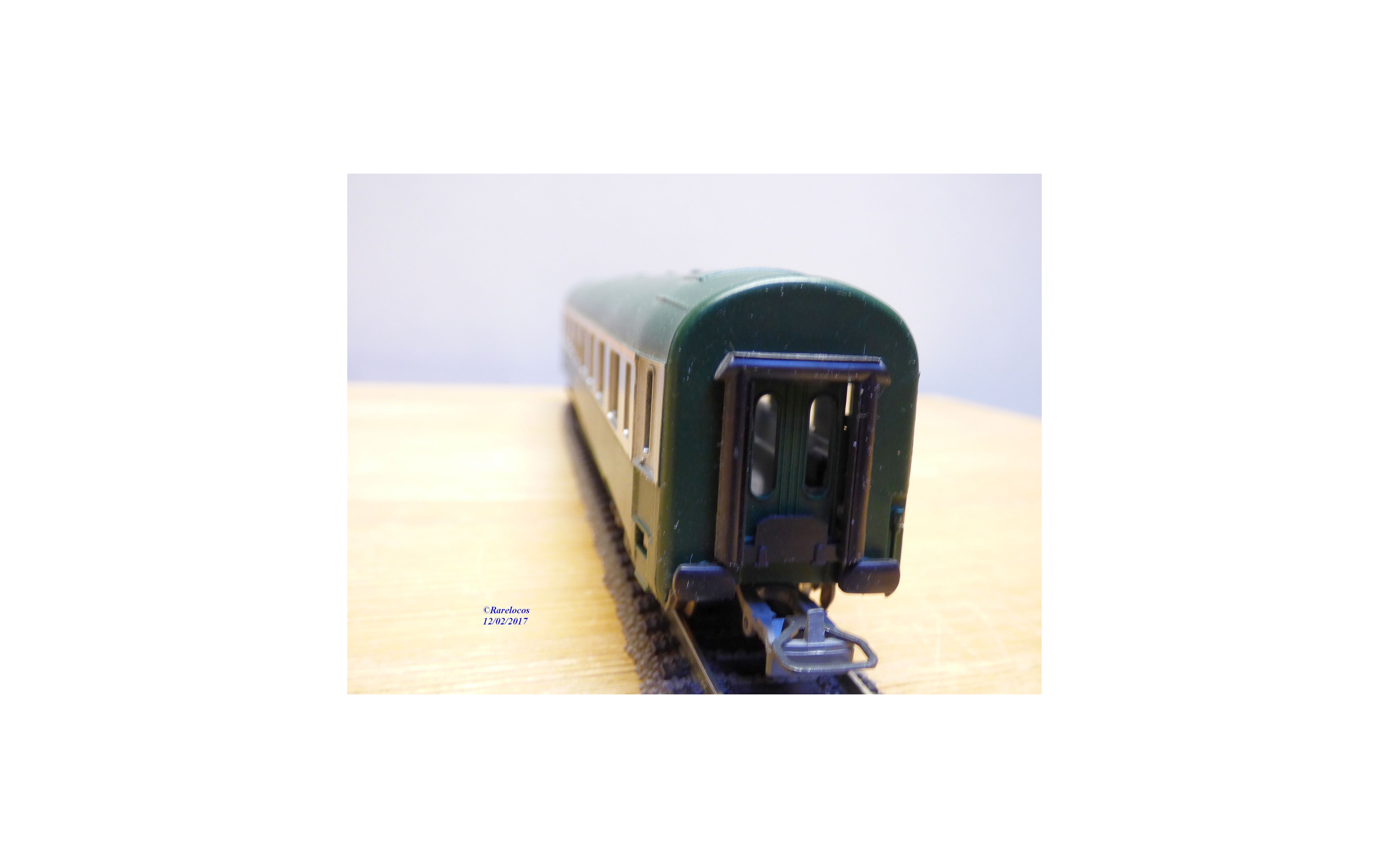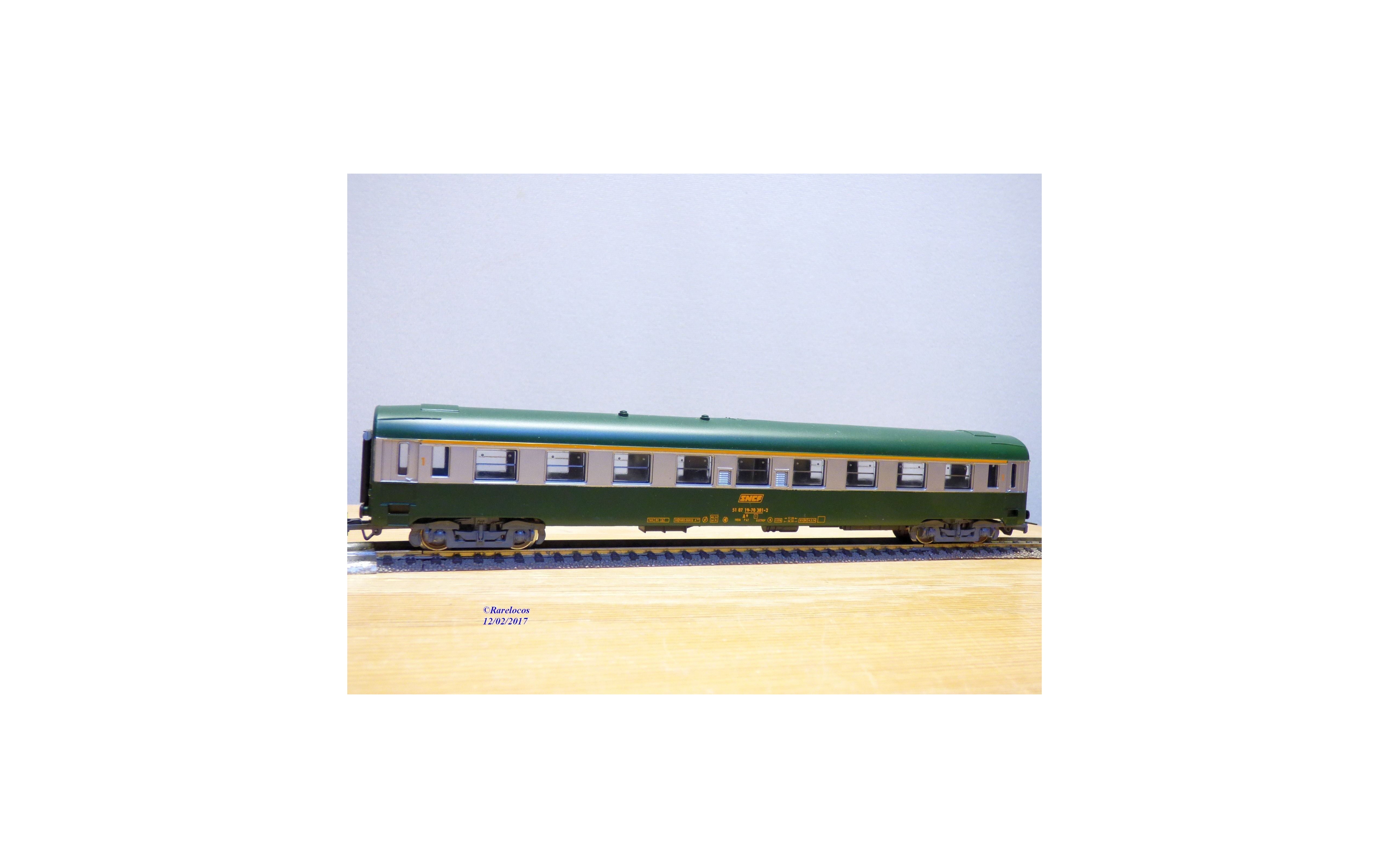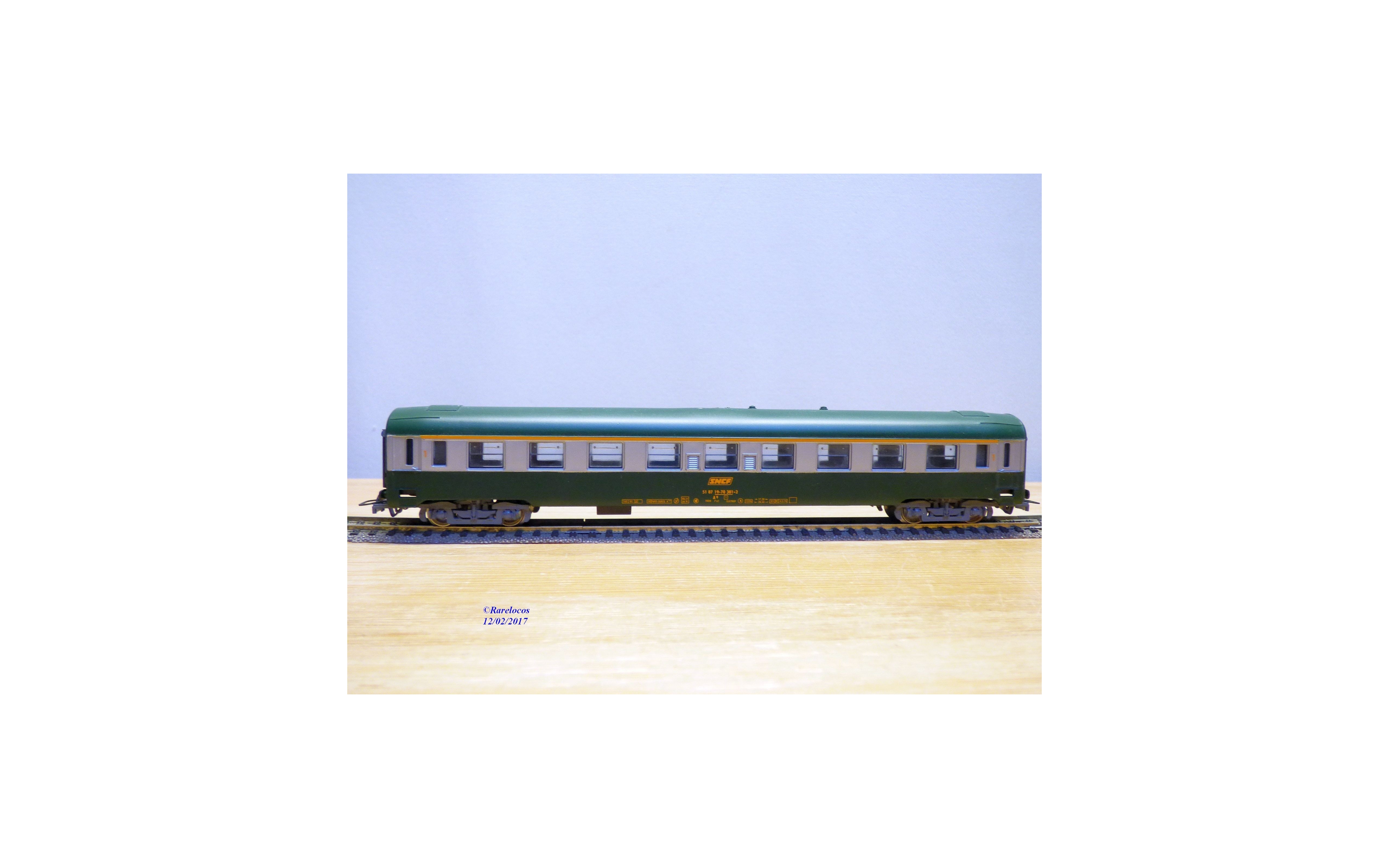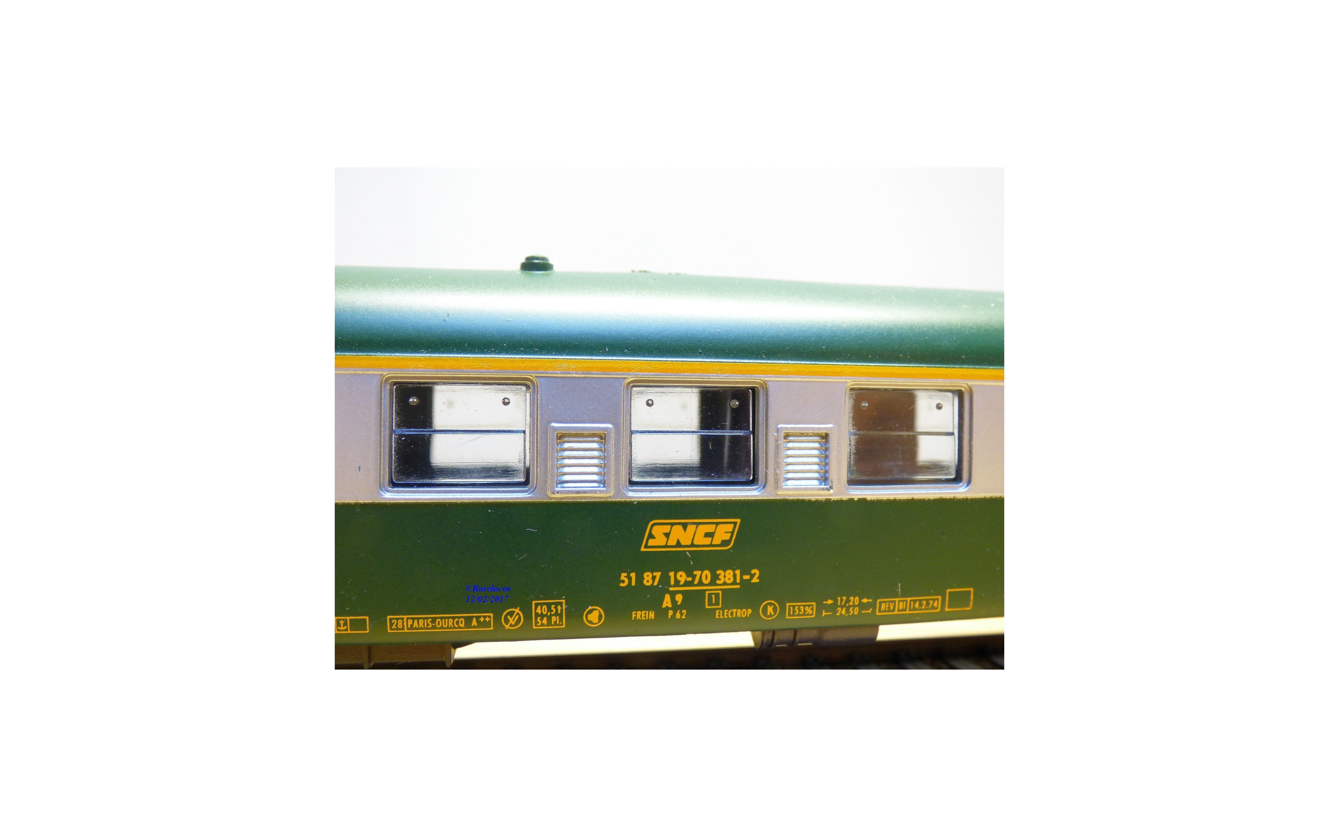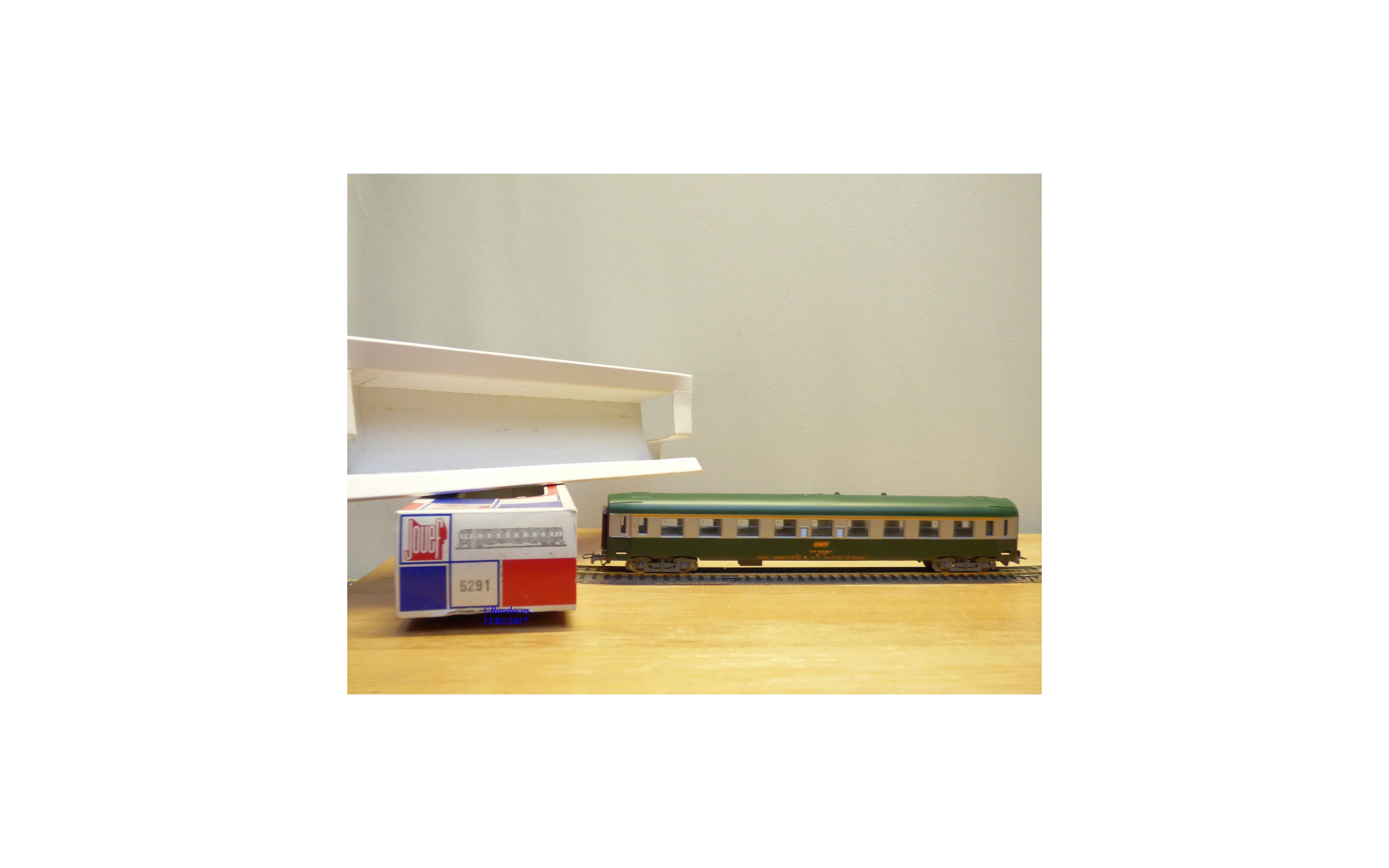 Voiture Y UIC 1 ère classe type A9 des chemins de fer français ( SNCF ), livrée vert SNCF à bande grise, boîte d'origine en bon état .