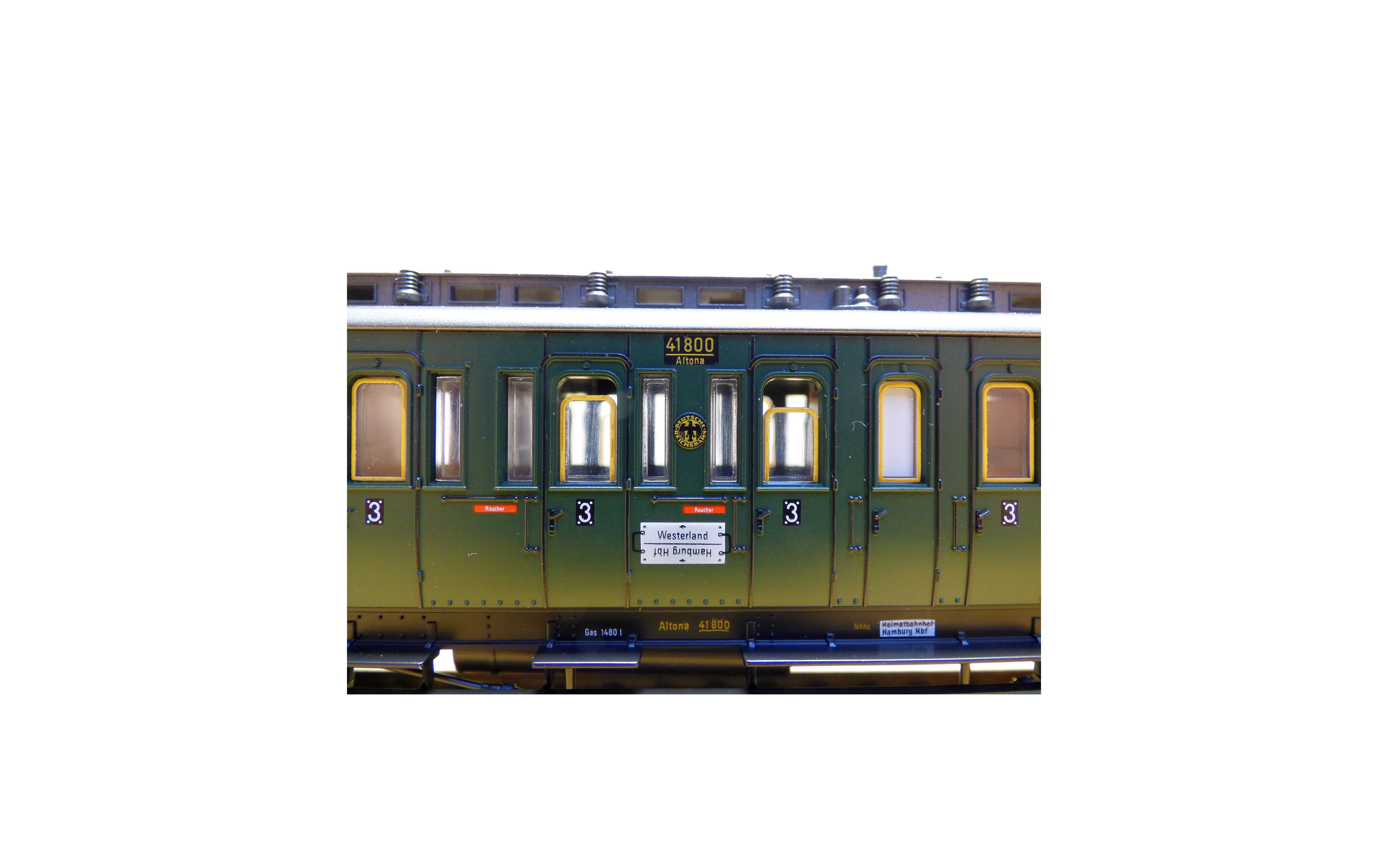 Voiture à portes latérales à bogies à guérite type Gas 14801 de 3 ème classe des chemins de fers allemands ( DR ), livrée verte à toit gris argent, immatriculation : 41 800 du dépôt de Hambourg Altona, boîte d'origine en excellent état.