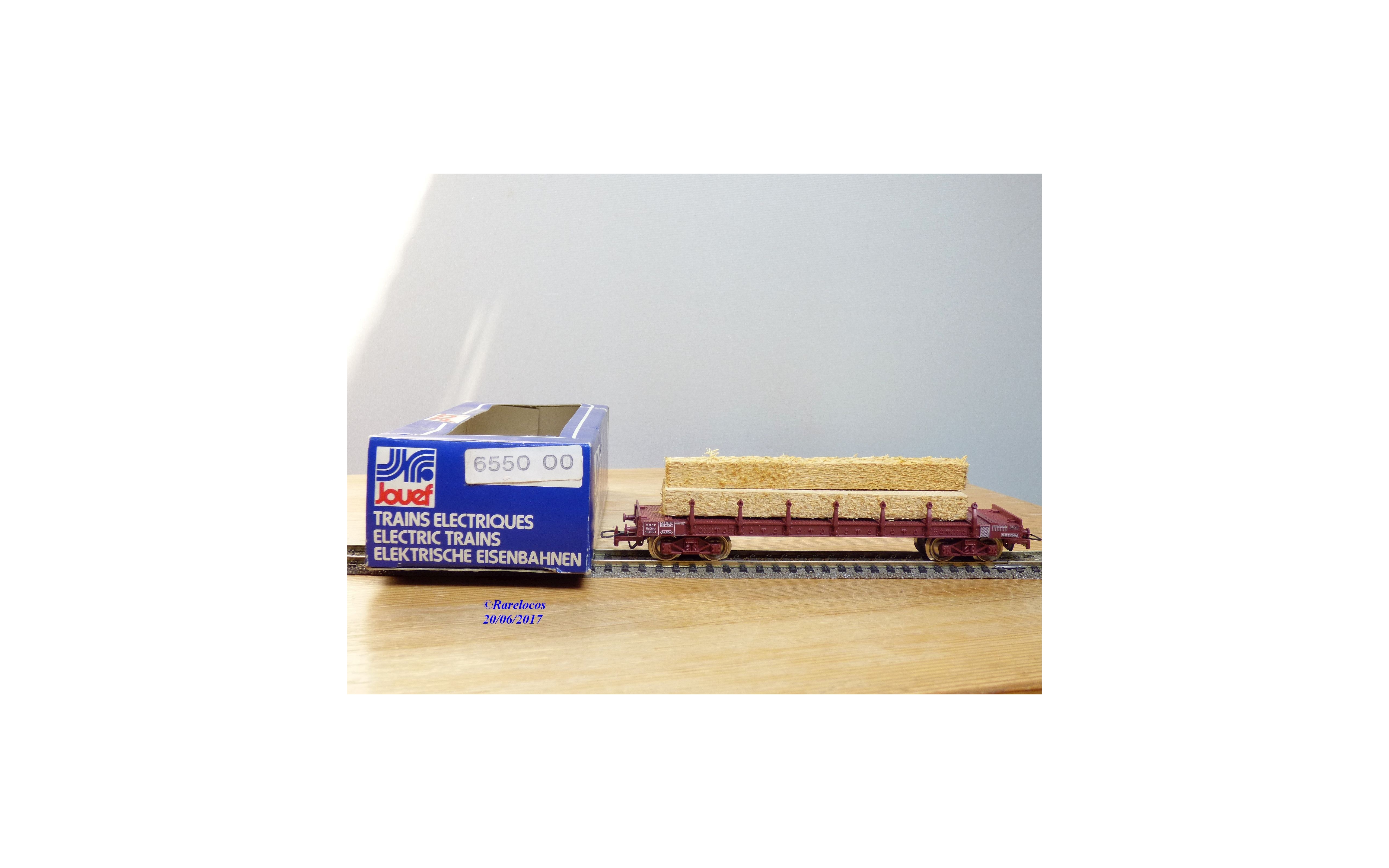 JOUEF 655000, wagon plat à ranchers à 2 bogies type Ro2yw chargé de poutres SNCF neuf BO (Ref: #655000)