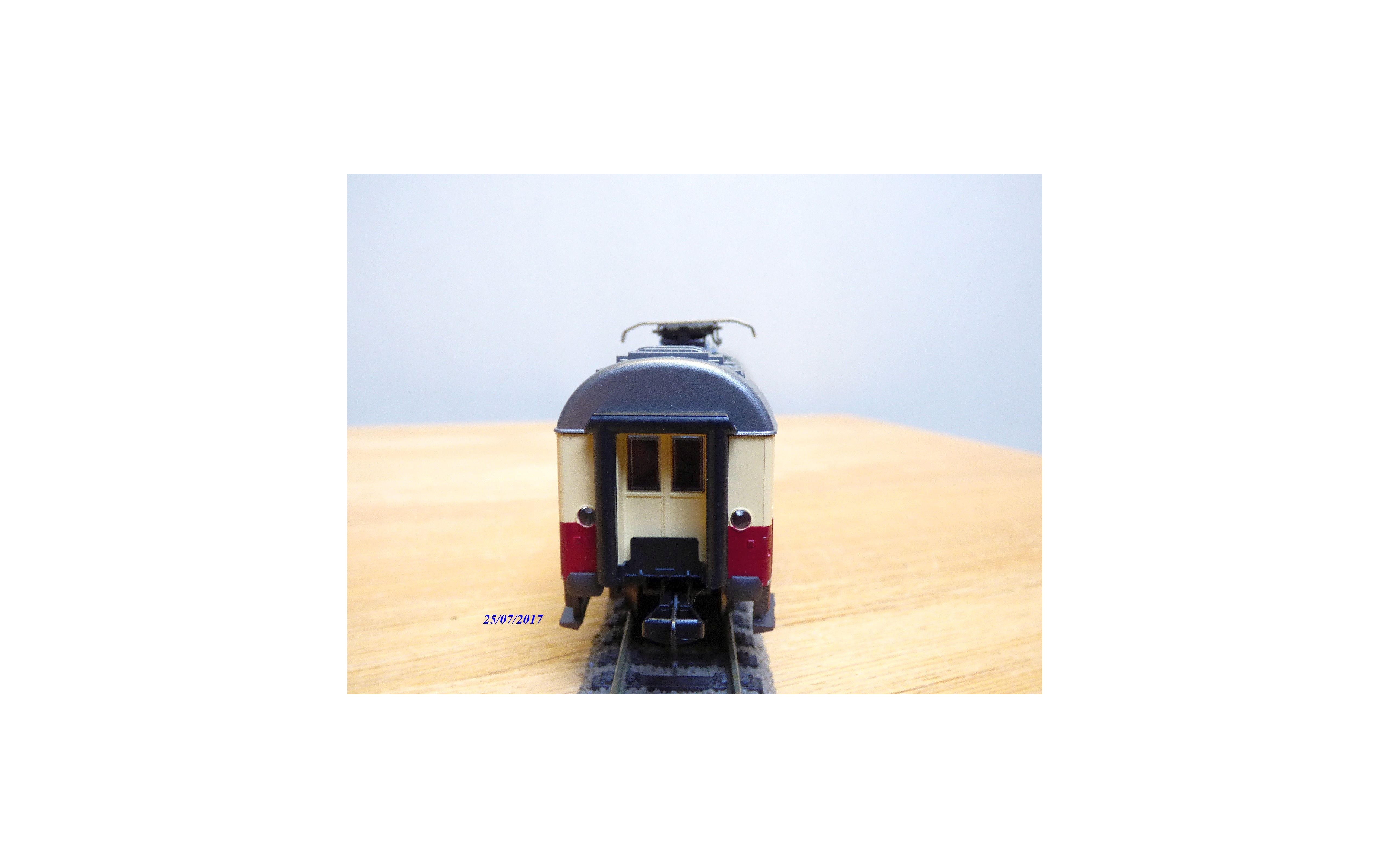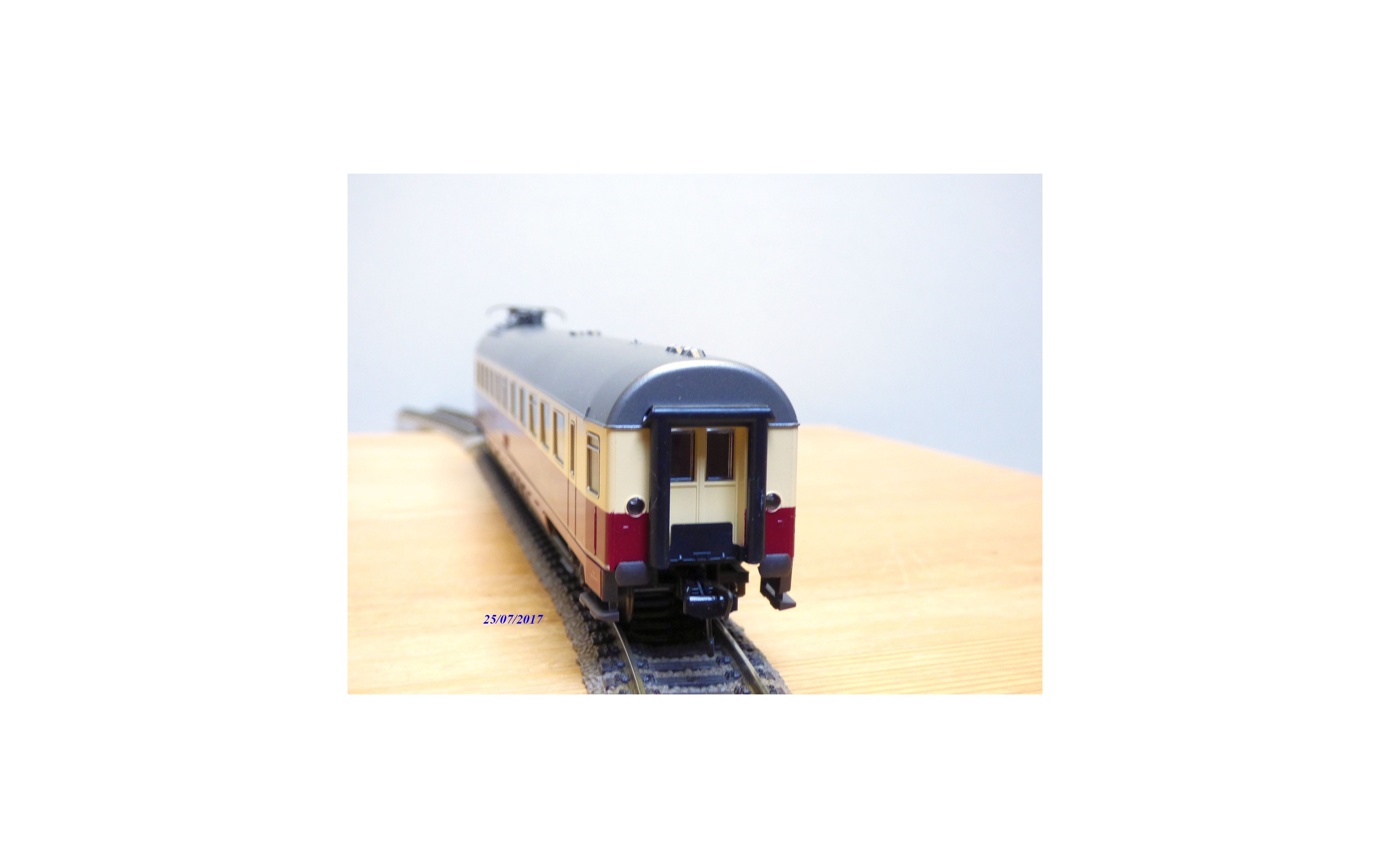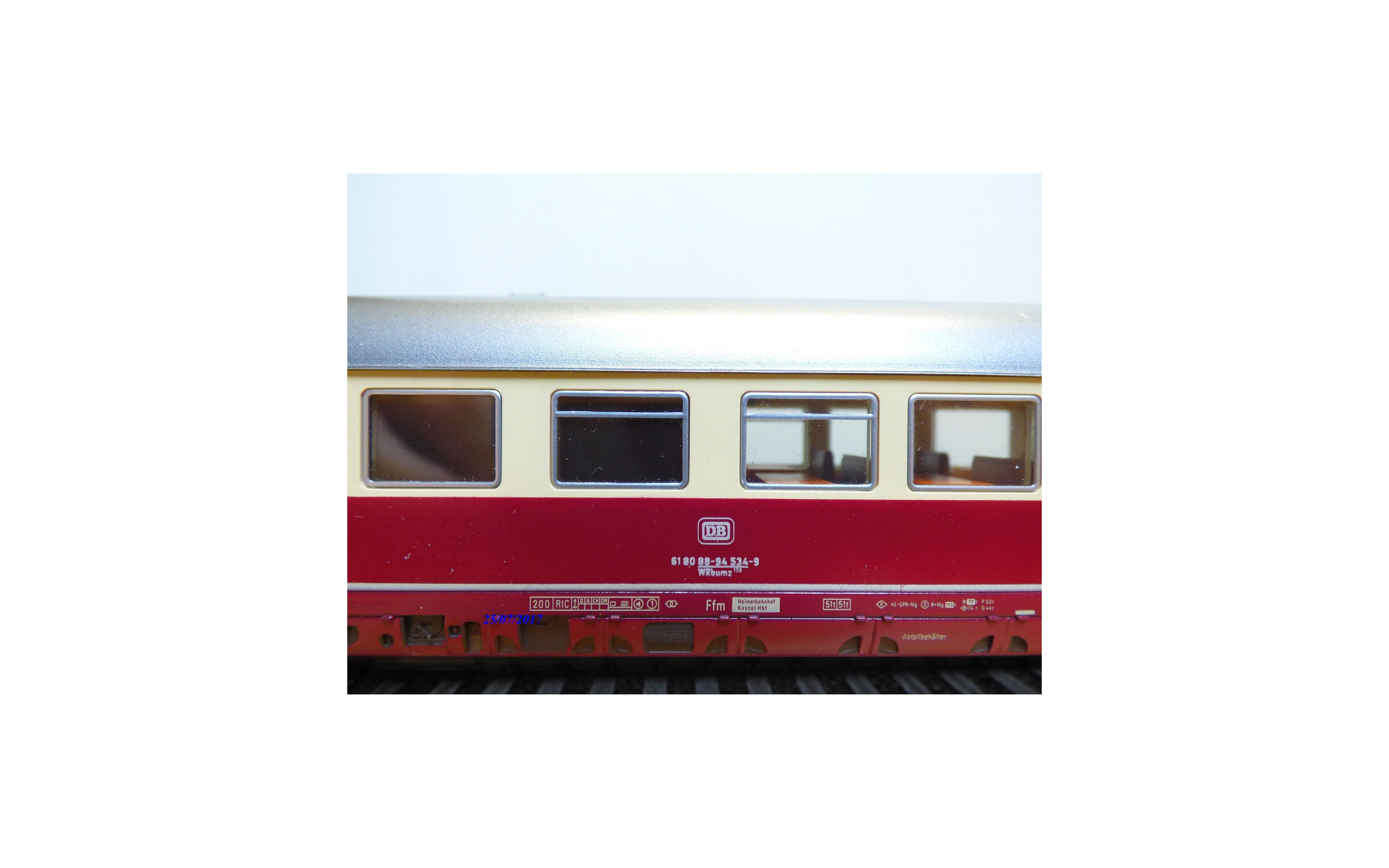 Wagon restaurant à pantographe à 2 bogies type WRbumz 139 des chemins de fer allemands ( DB), livrée lie de vin et crême à toit gris argent, aménagements intérieurs, immatriculation: 61 80 88-94 534-9 , boîte d'origine en excellent état.