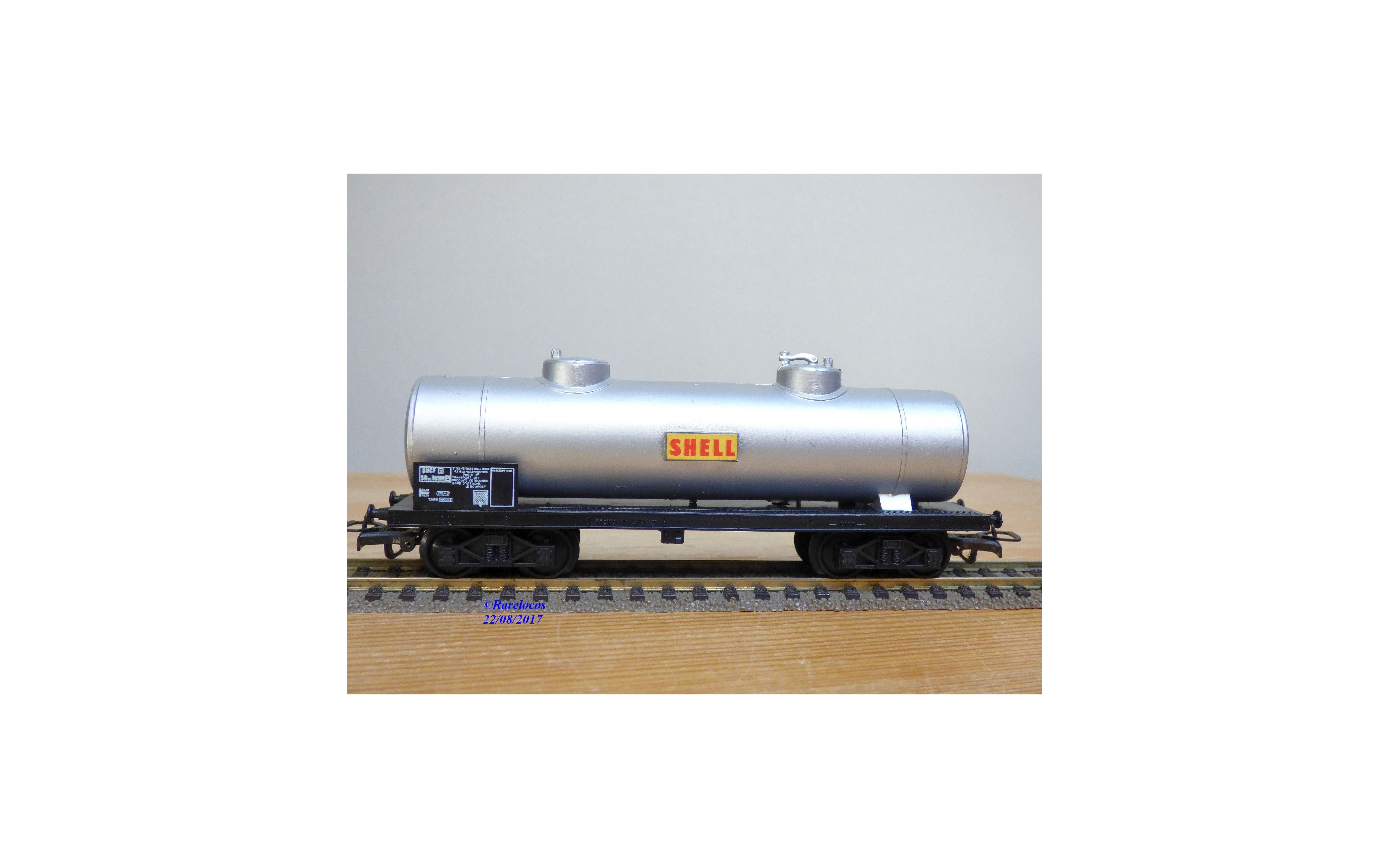 Wagon citerne à 2 bogies TP type Srw des chemins de fer français ( SNCF ), livrée grise avec marquages SHELL, boîte d'origine en excellent état.