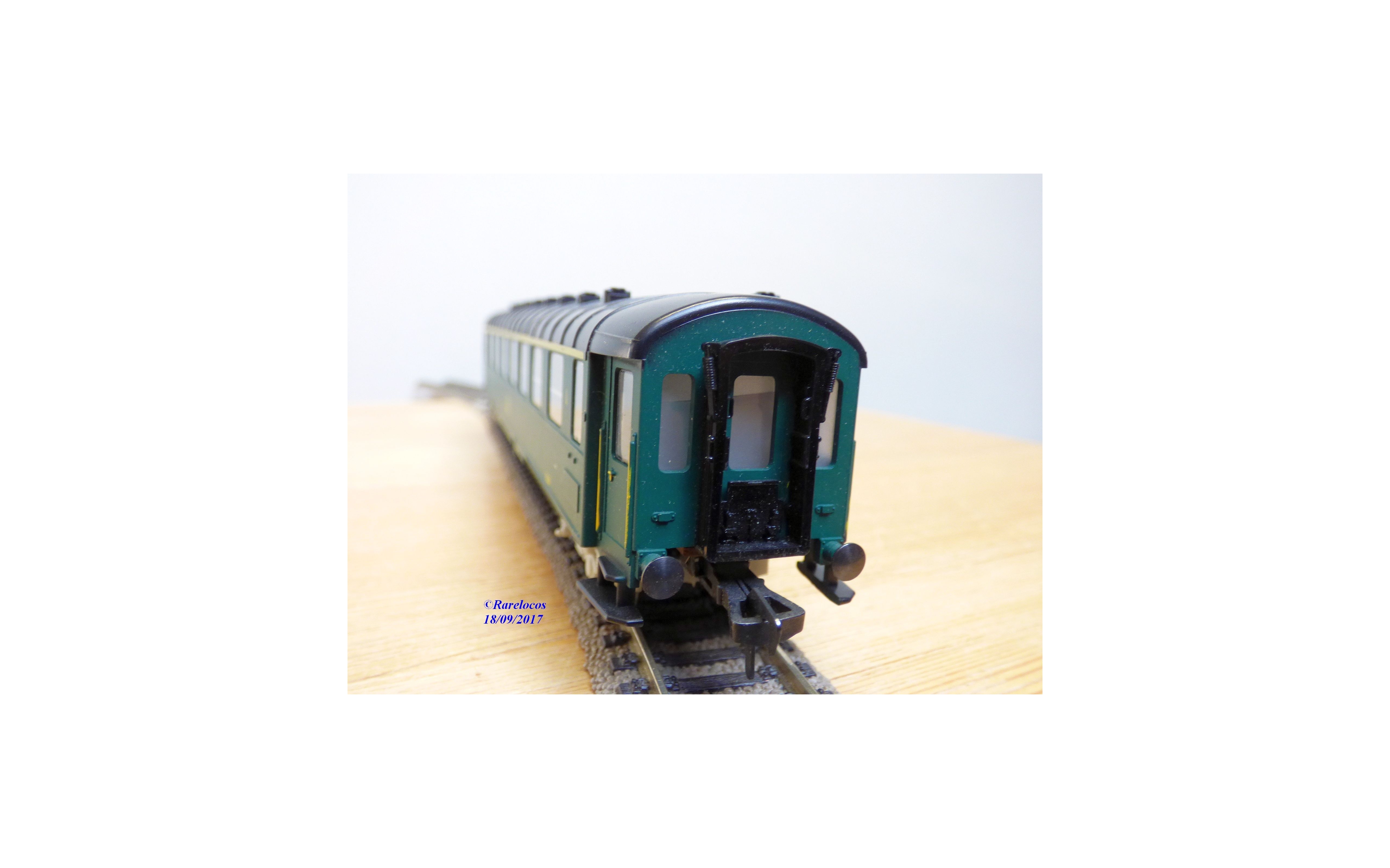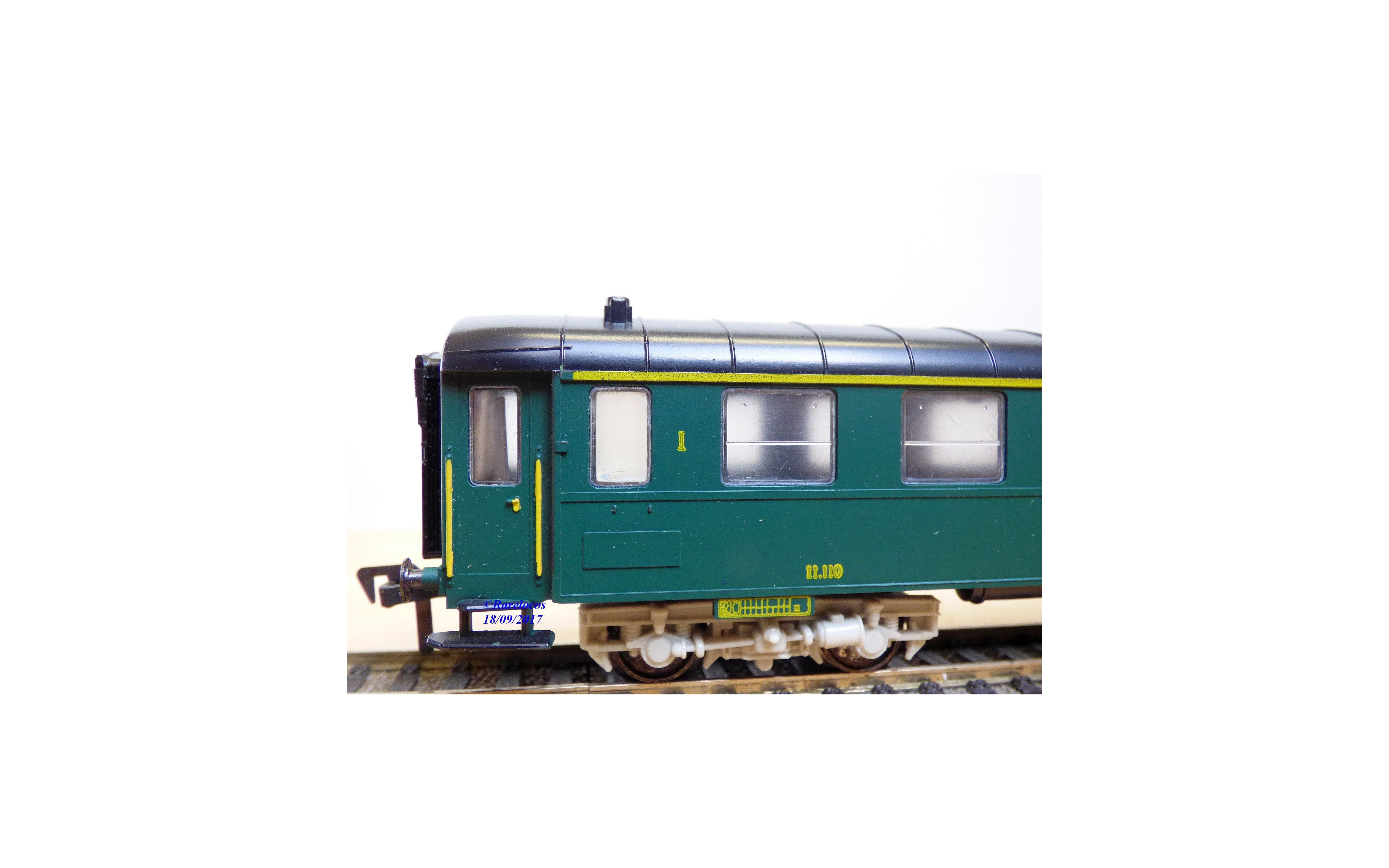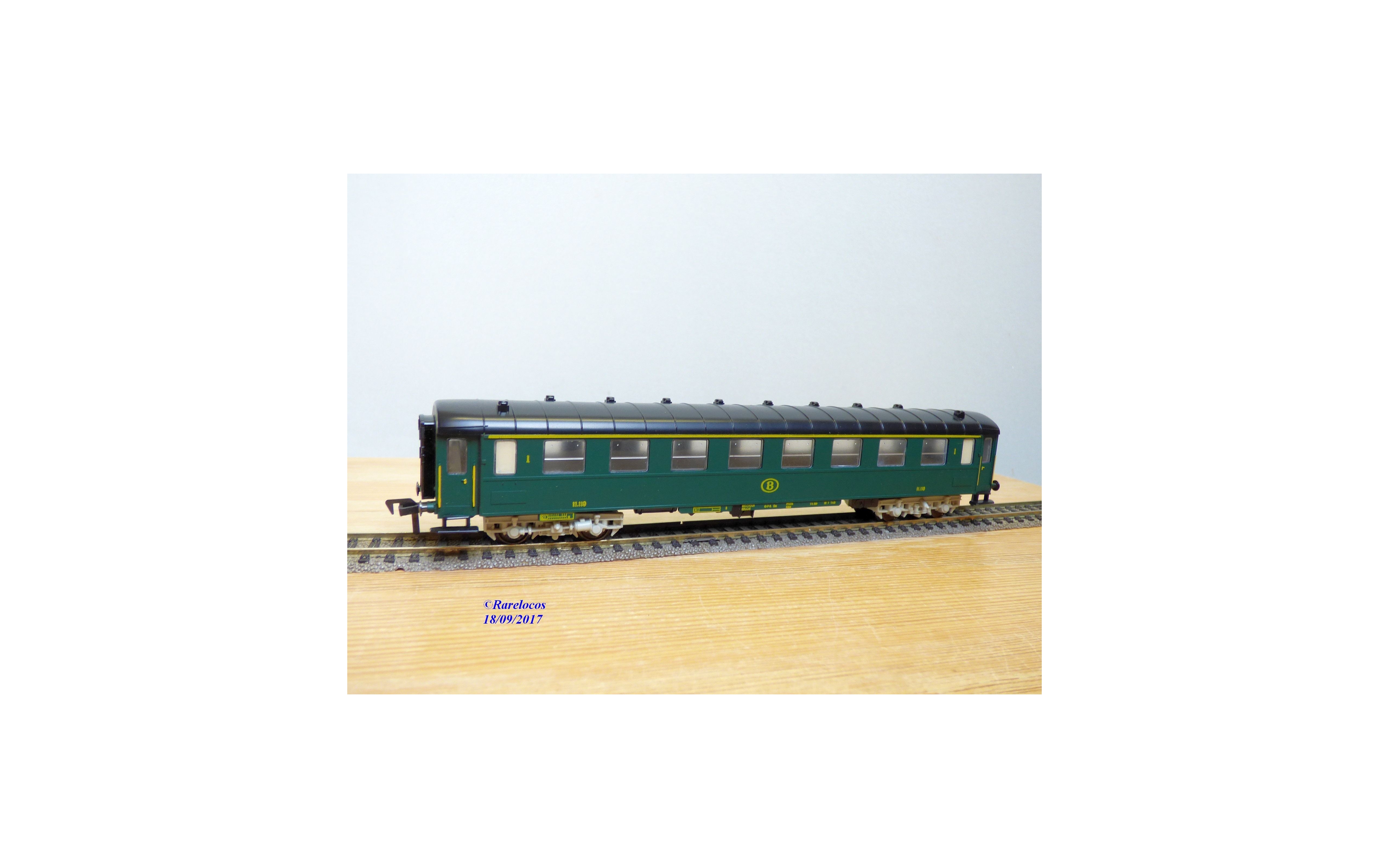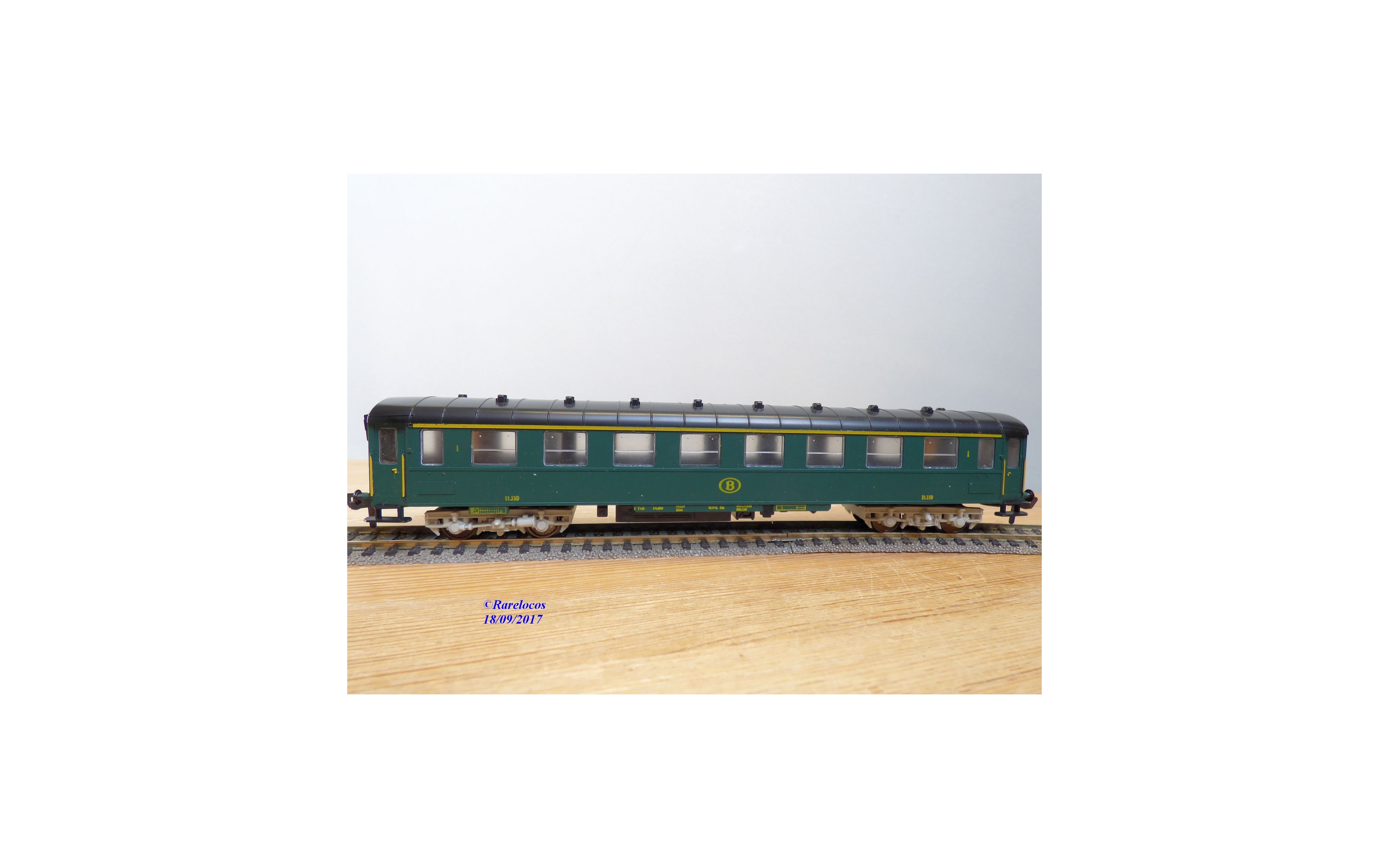 Voiture grandes lignes à 2 bogies des chemins de fer belges ( SNCB ), livrée verte à toit noir, immatriculation : 11.110 , boîte d'origine en état neuf.