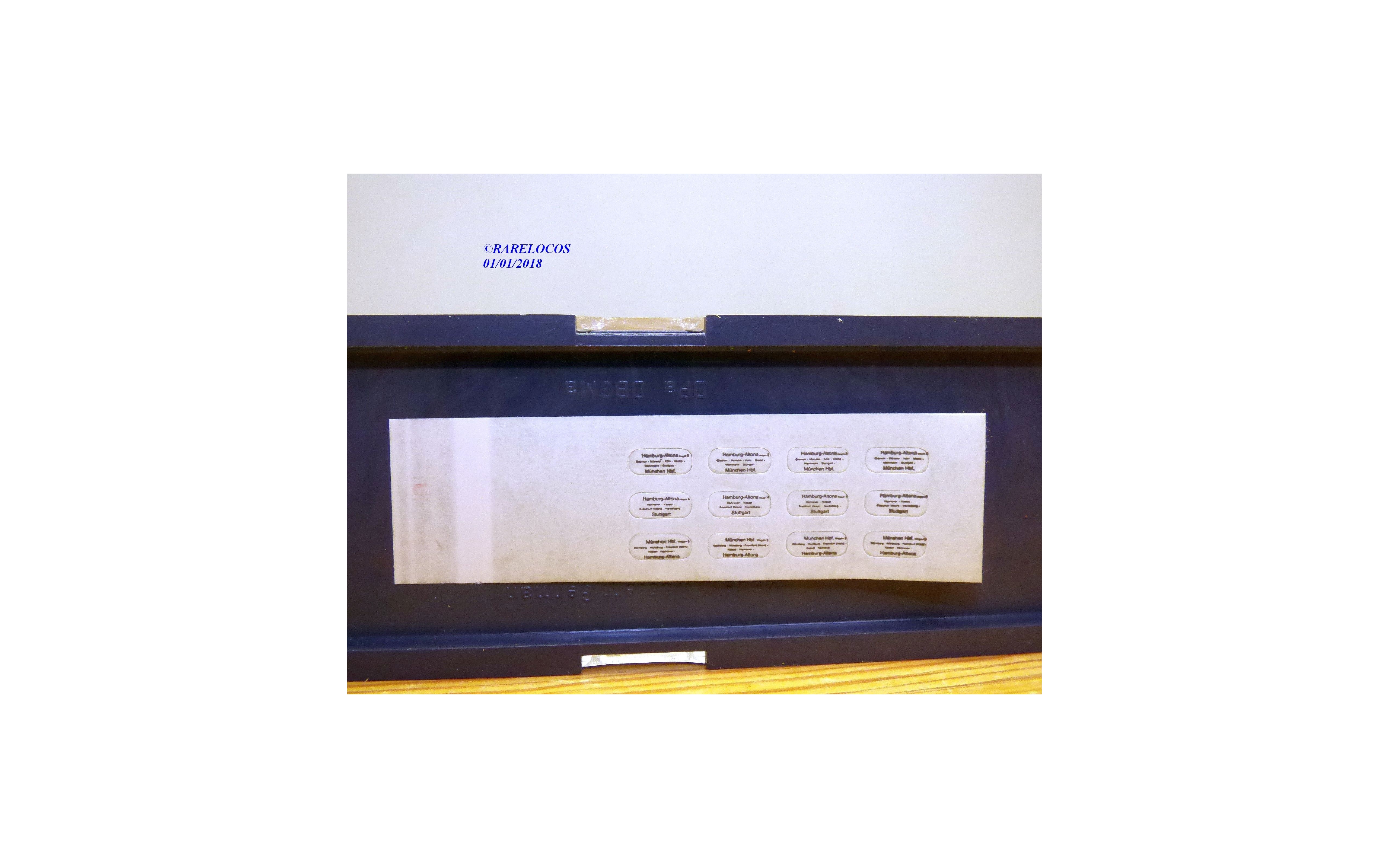 Voiture grandes lignes à 2 bogies de 1 ère classe type Aüm des chemins de fer allemands ( DB ), livrée orange et grise aménagements intérieurs, plaques d'itinéraires présentes, emballage d'origine en rrès bon état.