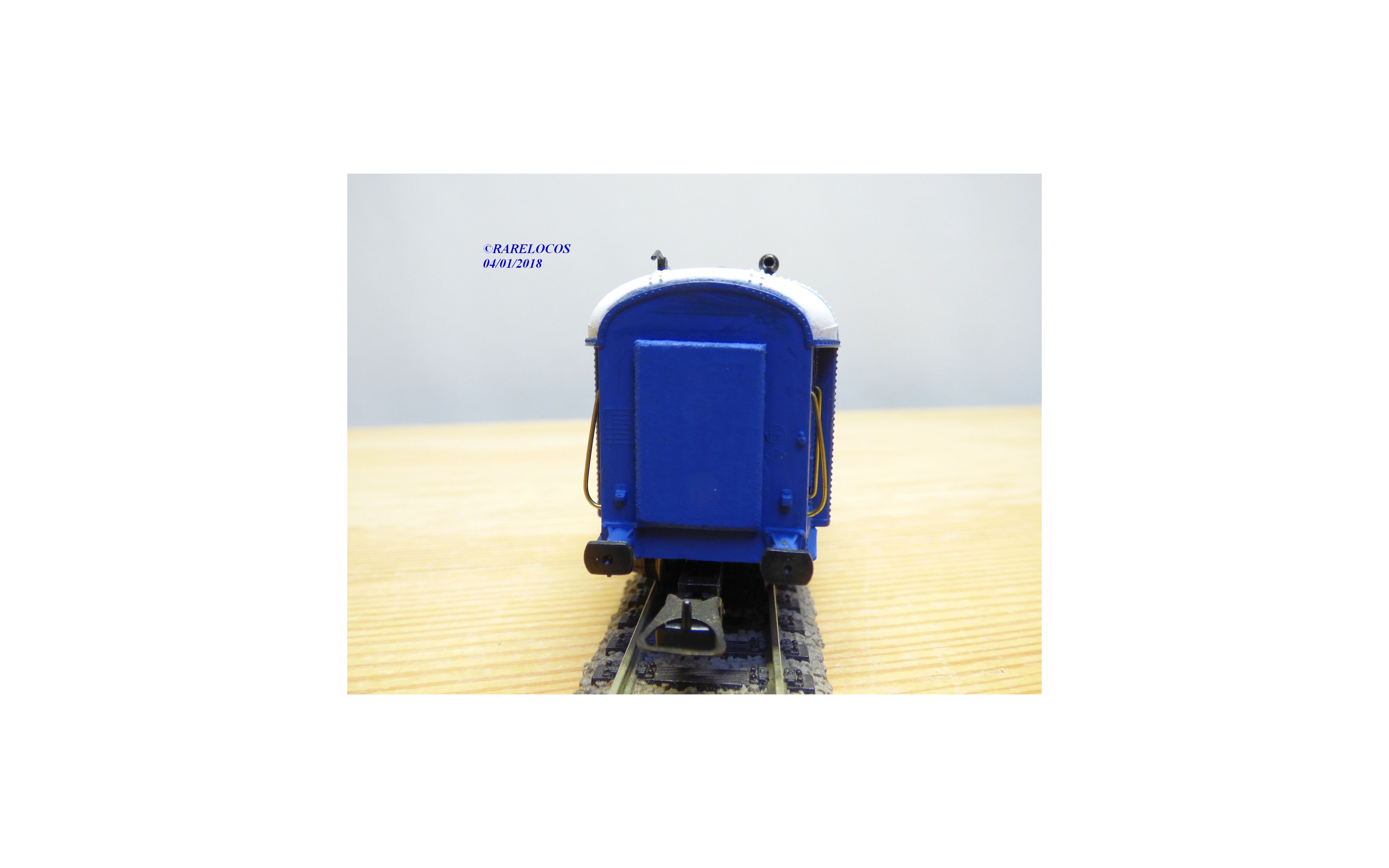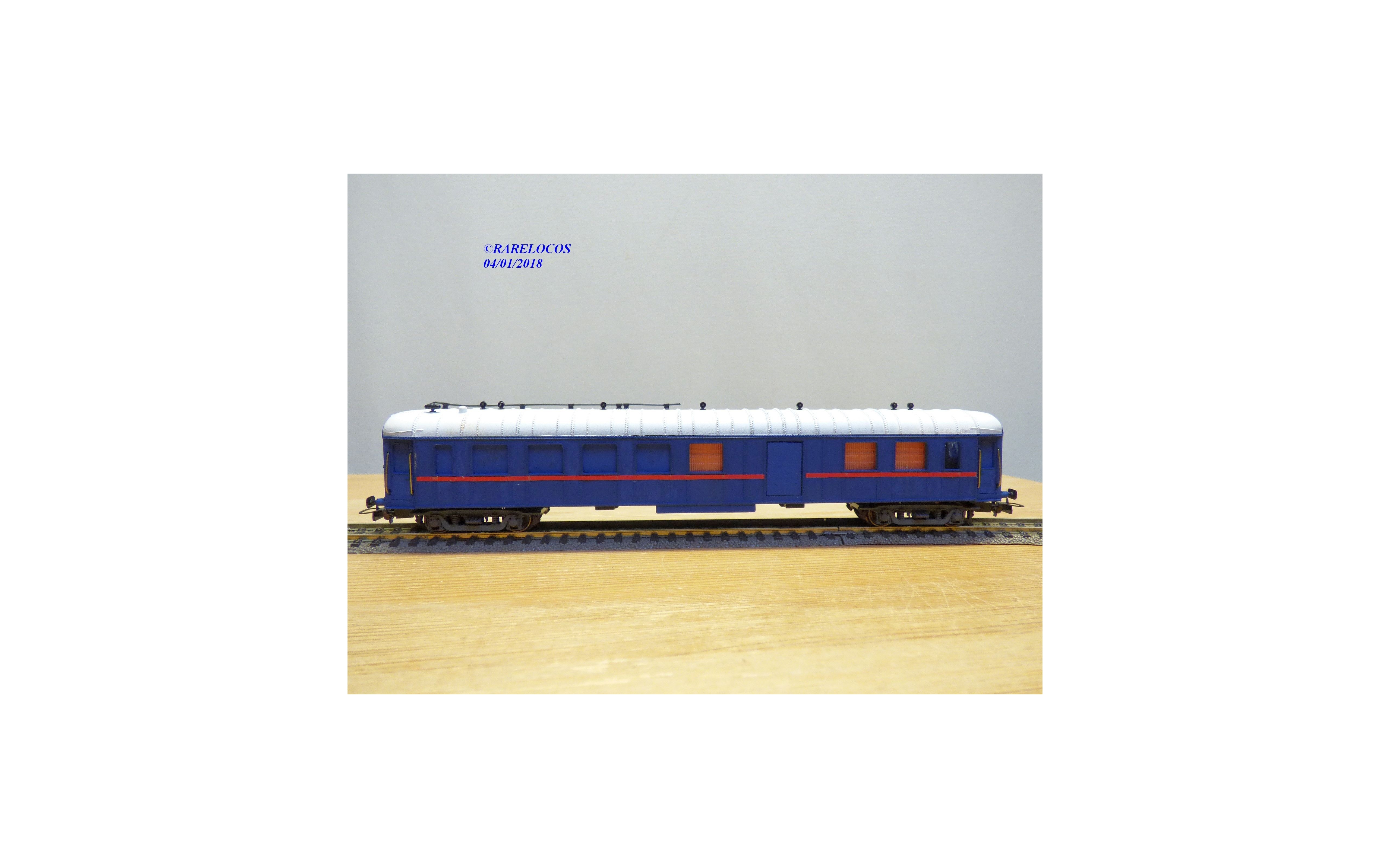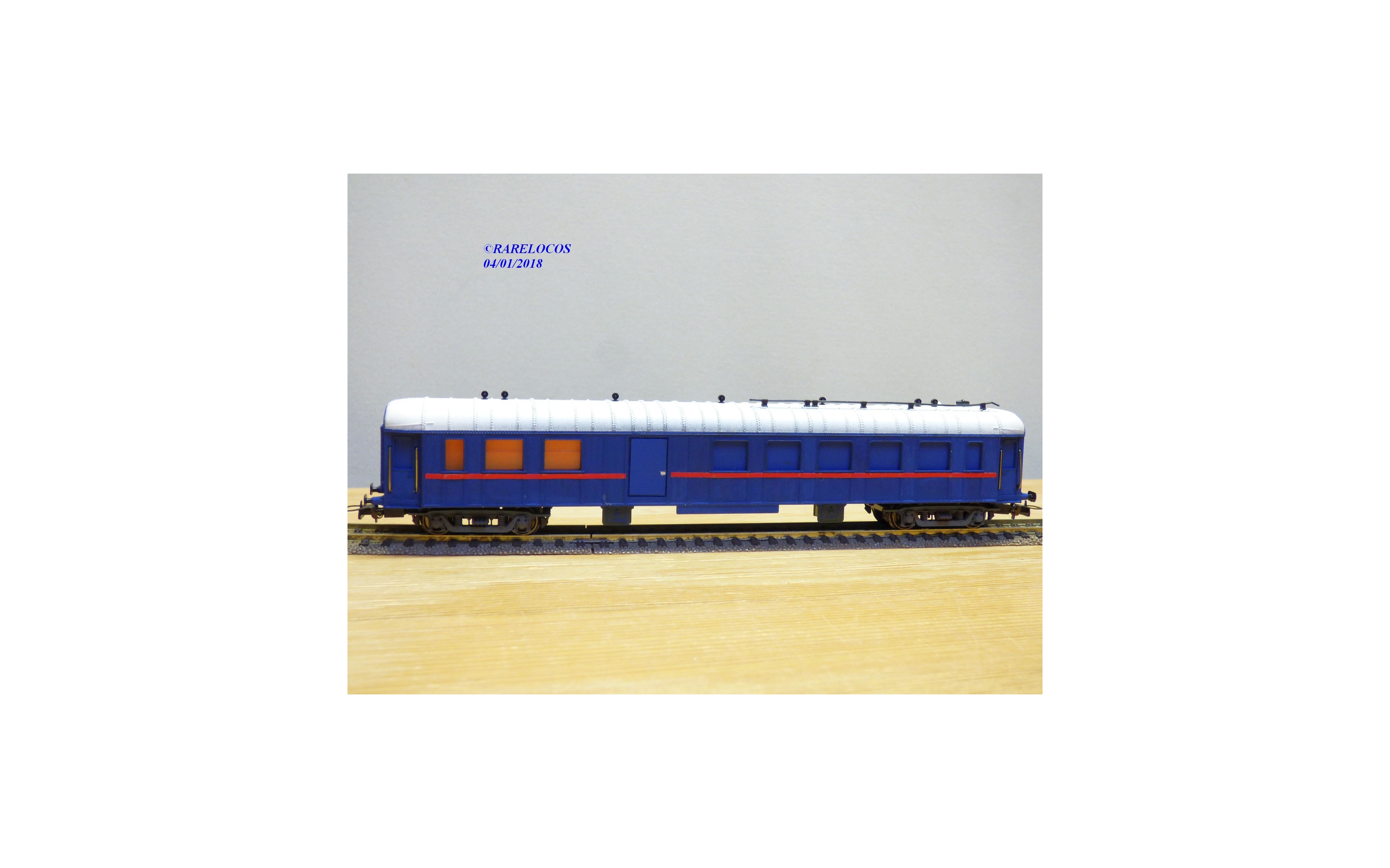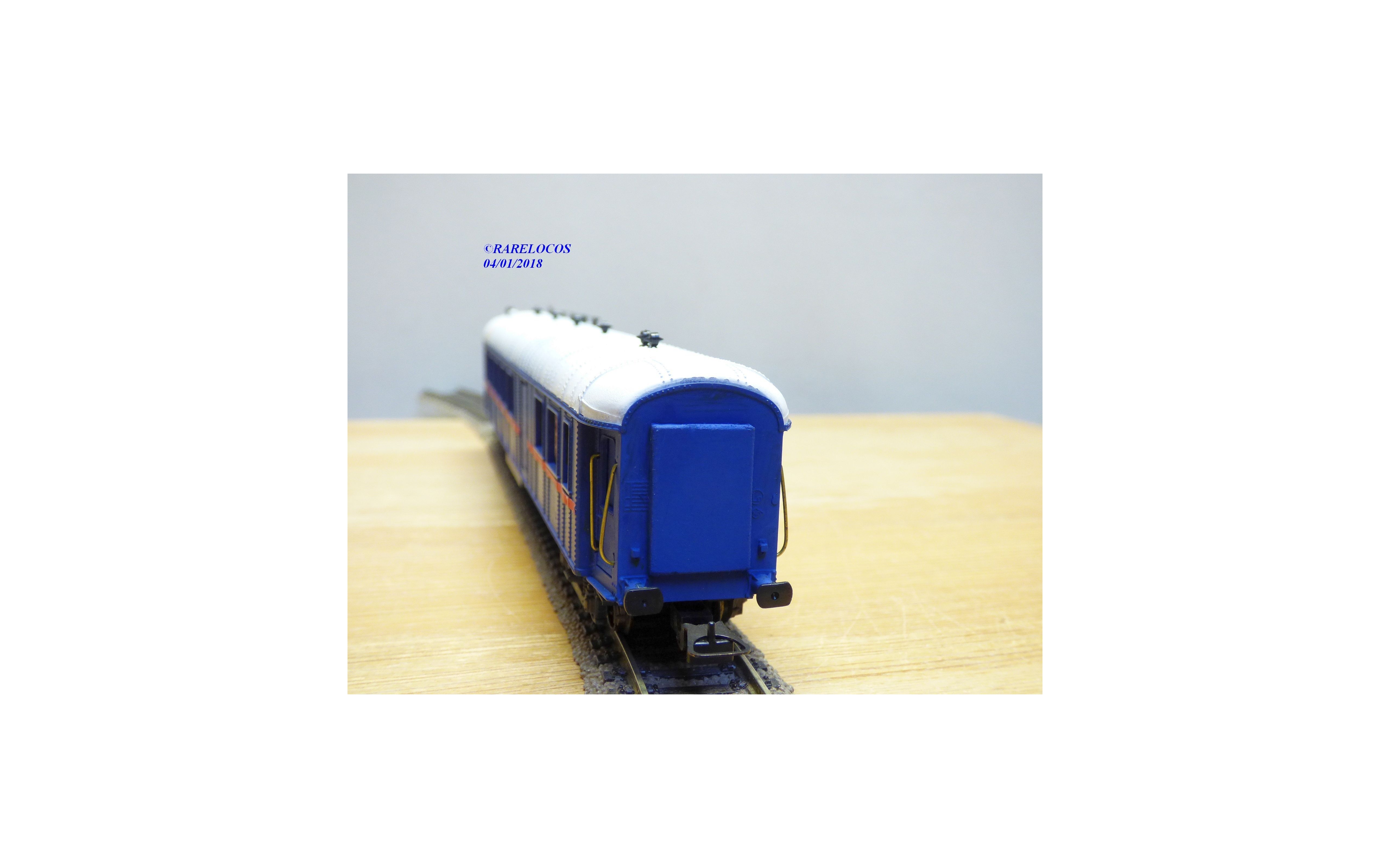 Voiture d' accompagnement pour ensemble gros porteur STSI ALSTOM sur base OCEM B4d des chemins de fer français ( SNCF), livrée bleuee à toit blanc, boîte d'origine en état neuf.