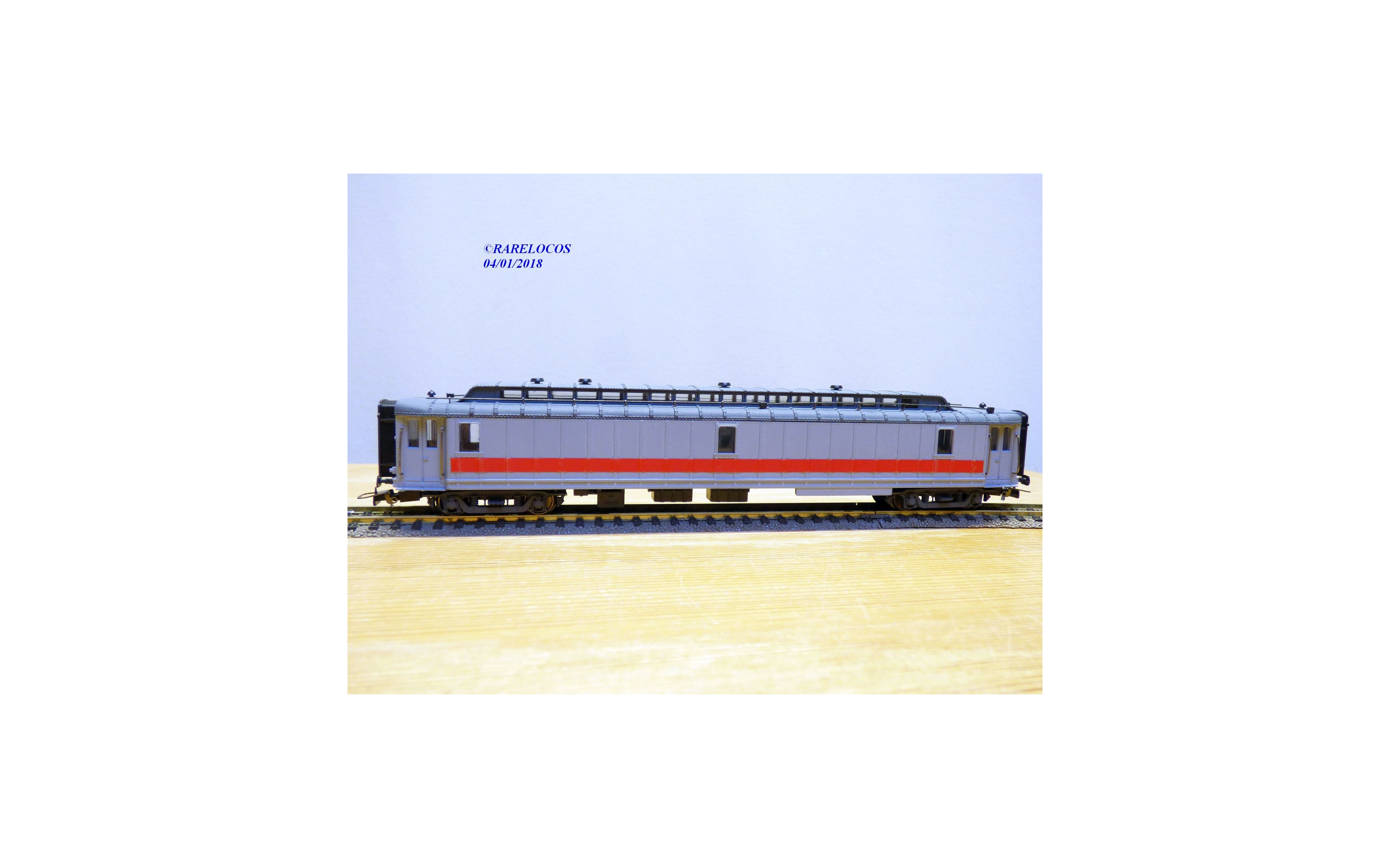 Voiture atelier sur base allège postale Paz des chemins de fer français ( SNCF), livrée grise à bande rouge, boîte d'origine en état neuf.