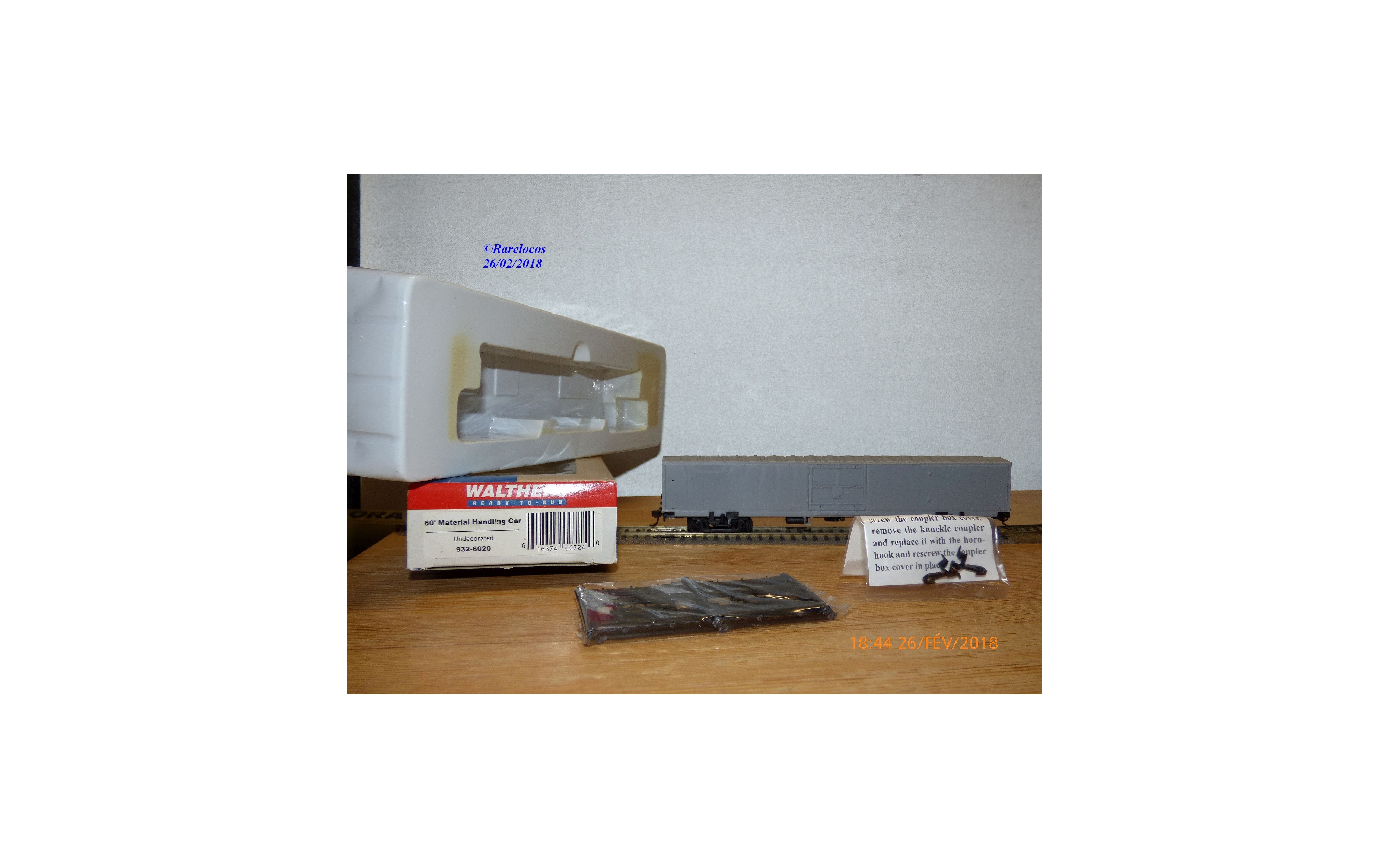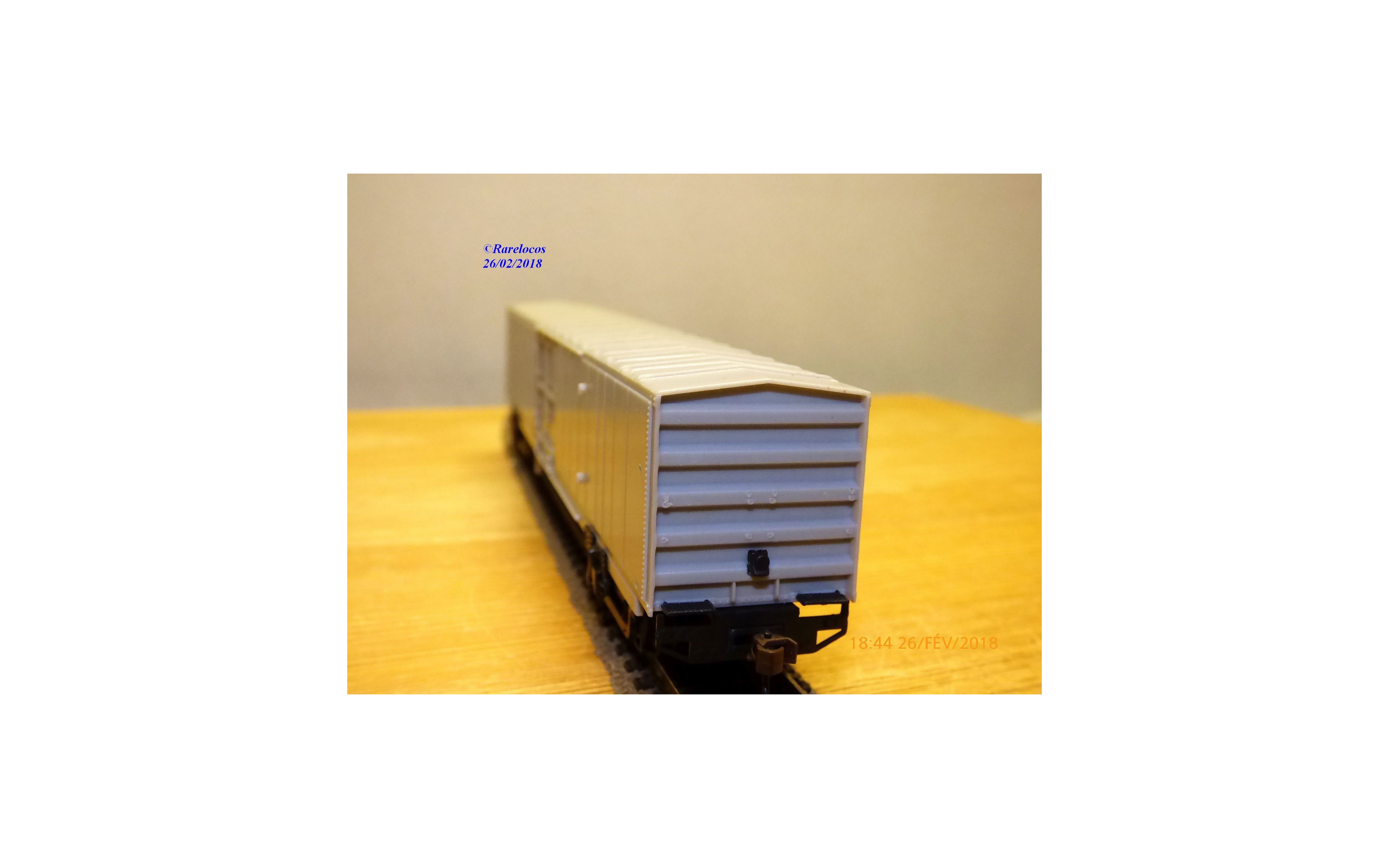 Wagon couvert marchandise pour intégration de transport de frêt dans des rames passagers ( material handling car ) des chemins de fer américains, prêt à peindre et décorer, pièces de détaillage encore scellées, boîte d'origine en état neuf.
