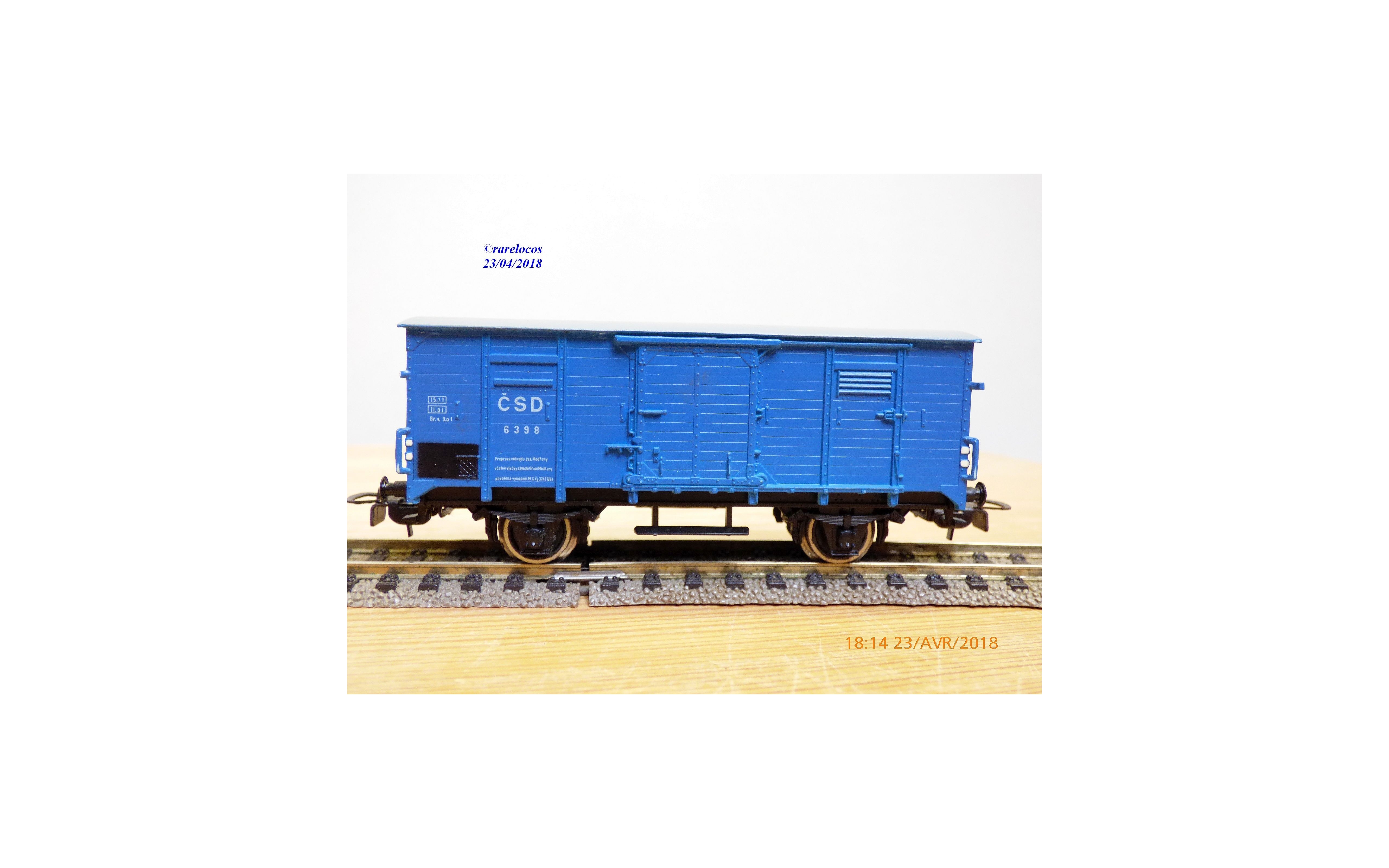 Wagon couvert ancien en bois 2 essieux des chemins de fer tchécoslovaques ( CSD ), livrée bleu vif à toit gris, boîte d'origine en excellent état mais probablement pas la bonne référence.