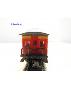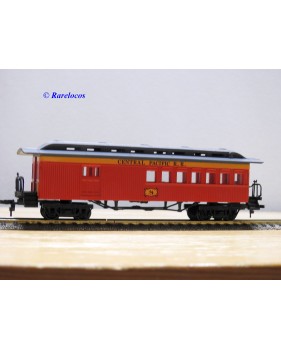 Voiture grandes lignes mixte ( combine ) des chemins de fer américains ( Central Pacific RR ), livrée orange et jaune à toit gris, immatriculation : 8, boîte d'origine en état neuf.